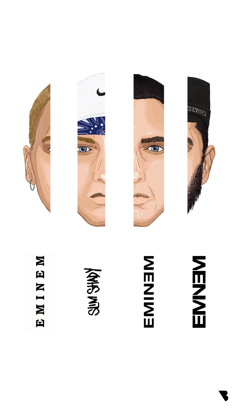 Om de tijd die Eminem actief bezig is in de muziekwereld te symboliseren/illustreren heb ik voor dit werk zijn bekende looks door de decennia heen gemaakt.