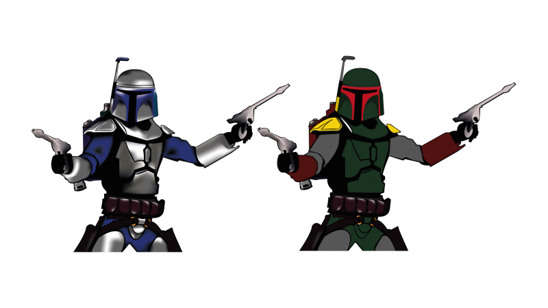 Ik heb in mijn eerste en tweede jaar op het Grafisch Lyceum Utrecht nog les gehad in het programma Flash. Daar heb ik vele illustraties in gemaakt, waaronder deze illustraties van Jango en Boba Fett.