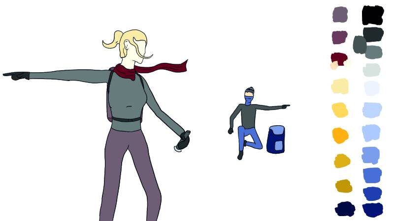 Een styleframe met een color board ernaast voor de animatie en illustratie gebaseerd op het boek Grip.