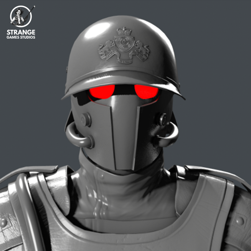 The crest is the symbol for the Dargellian army. Darg soldiers wear helmets with this crest displayed on the front of the upper part of their combat helmet. I have designed the crest displayed on the images below. I made this crest design in Illustrator. This 2D crest was then given to the 3D artist. He made the 3D render and in-game previews below. The soldier model was created by various artists. To get to this final design I went through various existing logos to get more inspiration.