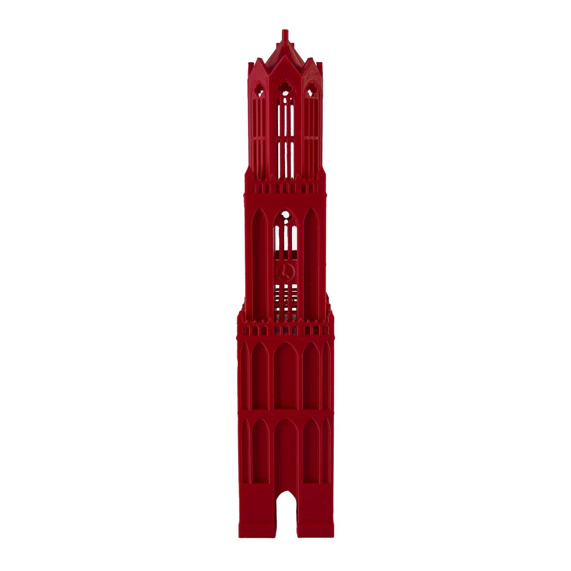 Een prachtige rode design Domtoren van 18 cm hoog, laag voor laag opgebouwd met een 3D printer. Leuk om cadeau te doen, of gewoon voor uzelf! Gemaakt van PLA (biologisch afbreekbaar materiaal).